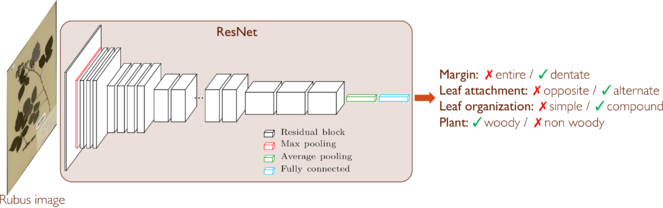 Natural history collection data are now accessible through databases and web portals. However, ecological or morphological traits describing specimens are rarely recorded while gathering data. This lack limits queries and analyses. Manual tagging of millions of specimens will be a huge task even with the help of citizen science projects such as “les herbonautes” (http://lesherbonautes.mnhn.fr). On the other hand, deep learning methods that use convolutional neural networks (CNN) demonstrate their efficiency in various domains, such as computer vision (